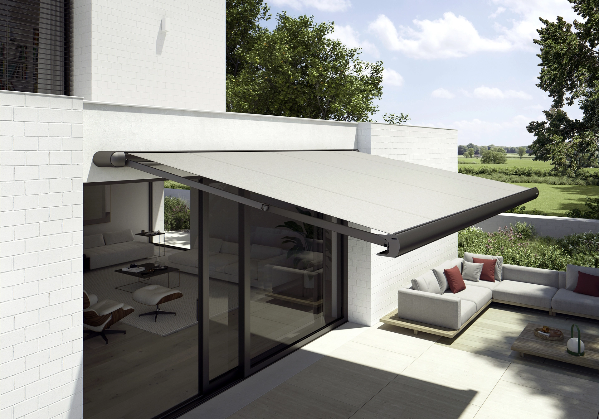 - Stilvolle Kassetten-Markise für weitläufige Terrassen
