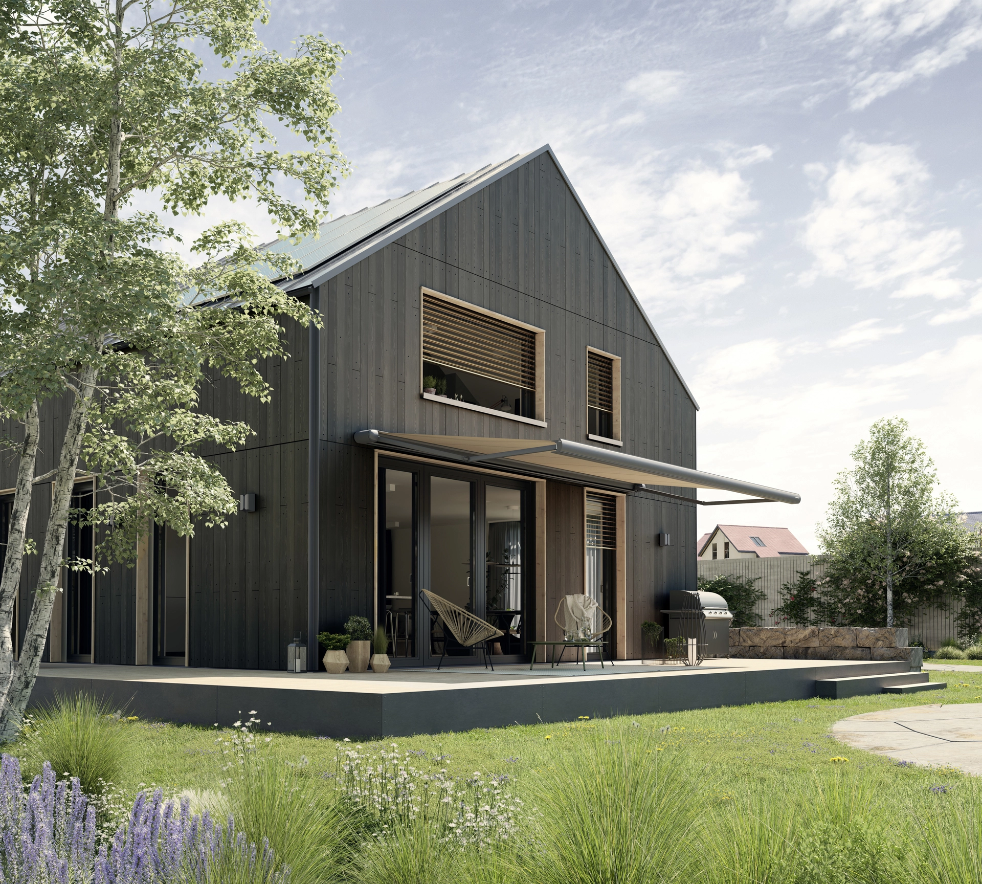 Die Terrea K55 ist mehr als eine Markise. Mit ihrer harmonischen Kombination aus geraden und runden Formen ist sie interessant für kubisch-moderne oder fließend-verspielte Baustile. Sie kann sich dezent integrieren oder gezielt akzentuieren. Ob Neubau oder Modernisierung – die Terrea K55 bietet die Freiheit, den persönlichen Stil zu verwirklichen.